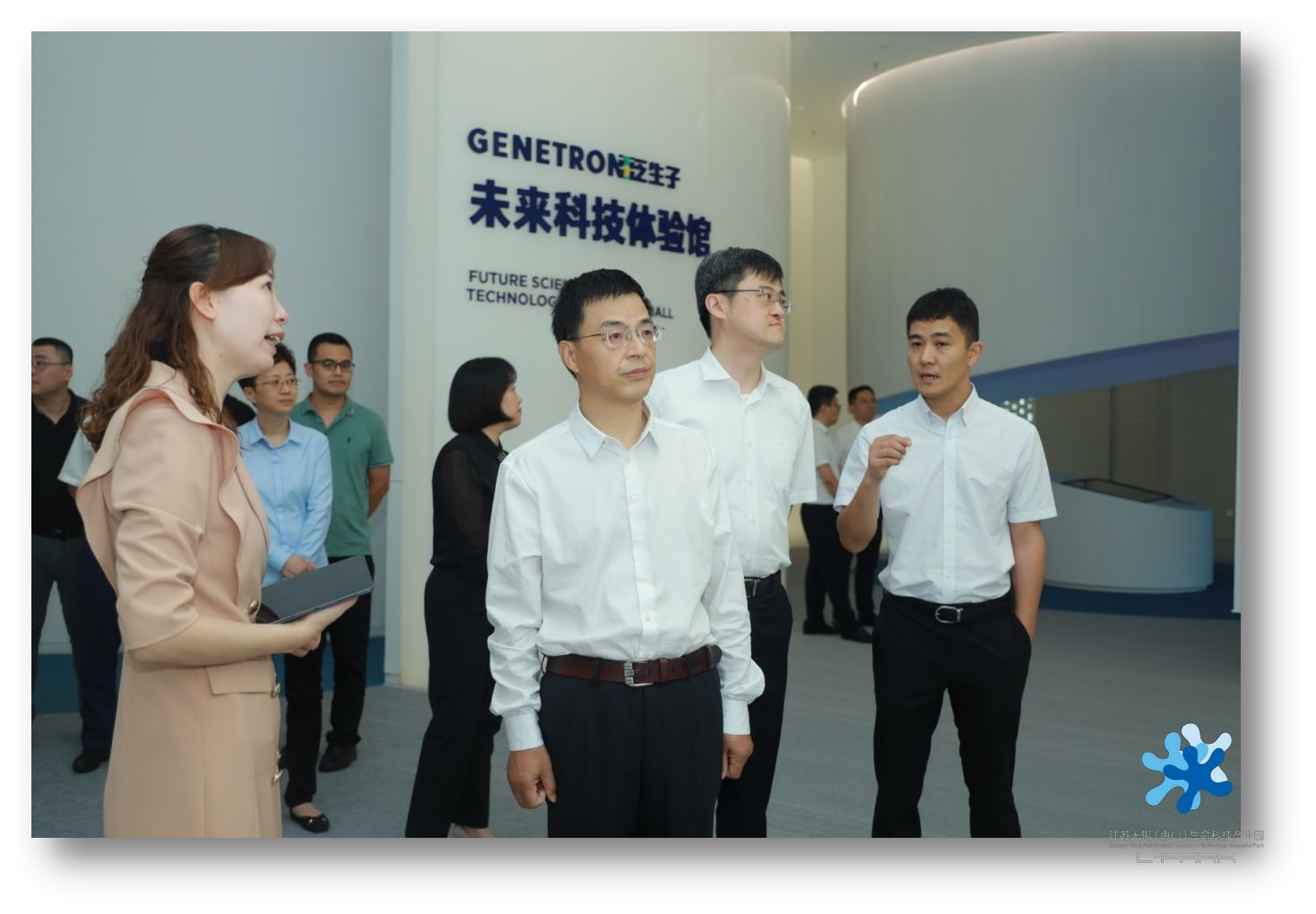 在E區(qū)新落成投運(yùn)的泛生子癌癥早篩中心總部基地,調(diào)研人員在商務(wù)副總監(jiān)黃丹的陪同下參觀了基地一樓展廳、科技體驗(yàn)館和二樓的研發(fā)中心。泛生子是全球精準(zhǔn)醫(yī)療領(lǐng)域行業(yè)領(lǐng)軍,入選《麻省理工科技評(píng)論》“2020年全球50家最聰明公司”;全球獨(dú)家、中國(guó)首創(chuàng)的液體活檢肝癌早篩產(chǎn)品“甘預(yù)”獲美國(guó)FDA突破性醫(yī)療器械認(rèn)證,落地施行惠山區(qū)“肝癌早篩綜合防控”示范項(xiàng)目,打造全國(guó)低肝癌示范城市。