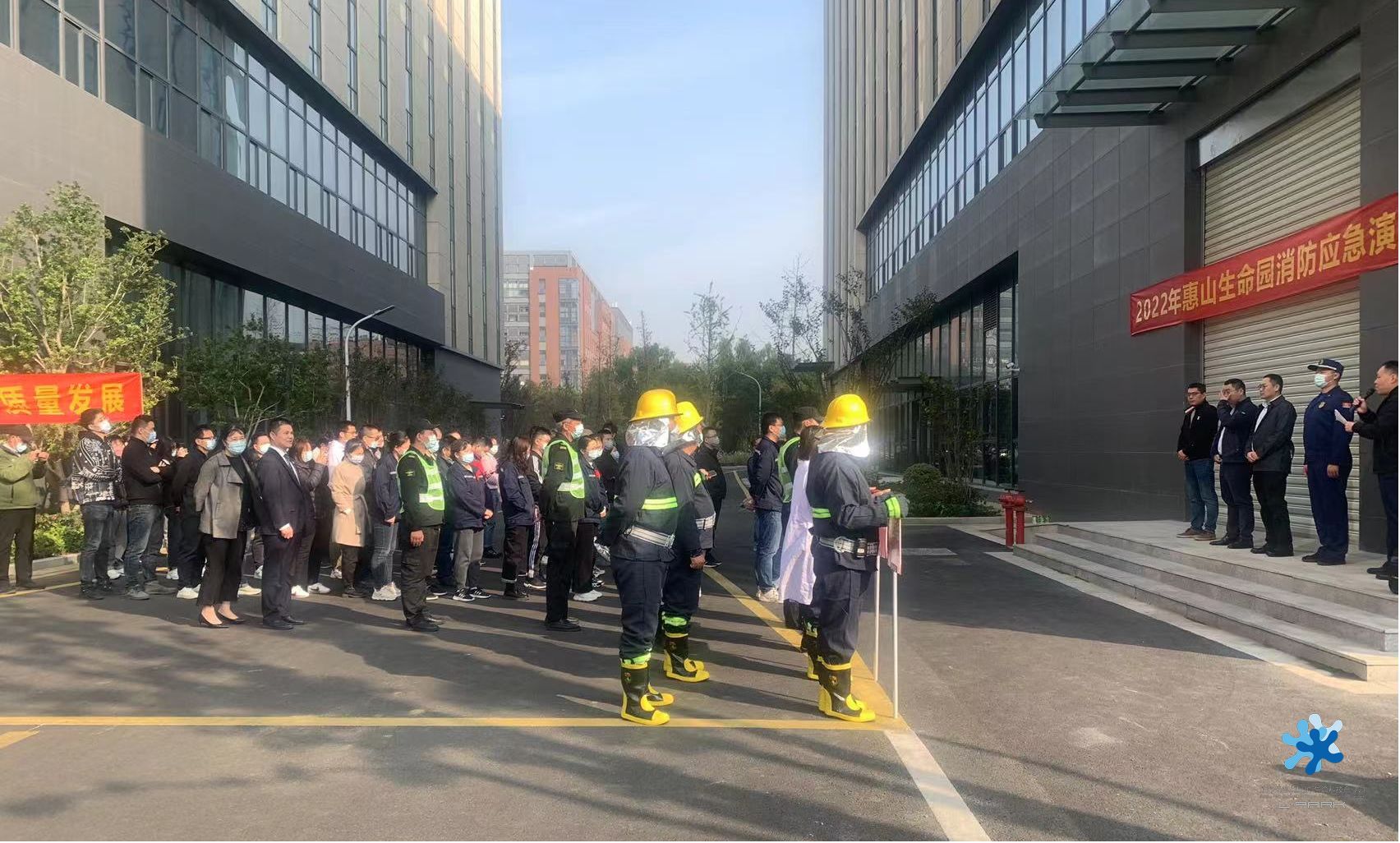 11月9日是第31個(gè)“全國(guó)消防日”,今年消防宣傳月的主題是“抓消防安全,保高質(zhì)量發(fā)展”;11月15日下午,惠山生命園2022年消防應(yīng)急演練在總部經(jīng)濟(jì)集聚區(qū)泛生子公司大樓西側(cè)廣場(chǎng)舉行,園區(qū)安全領(lǐng)導(dǎo)小組成員及企業(yè)安全員代表、泛生子生物員工、金科物業(yè)工作人員近100人參加演練,惠山經(jīng)開(kāi)區(qū)、惠山區(qū)消防救援大隊(duì)相關(guān)專(zhuān)家領(lǐng)導(dǎo)蒞臨給予現(xiàn)場(chǎng)指導(dǎo)。
