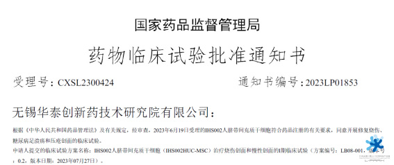 9月18日,無(wú)錫華泰創(chuàng)新藥技術(shù)研究院具有自主知識(shí)產(chǎn)權(quán)的Ⅰ類新藥——“IHS002人臍帶間充質(zhì)干細(xì)胞”(受理號(hào)CXSL2300424)正式獲得國(guó)家藥品監(jiān)督管理局的臨床試驗(yàn)?zāi)驹S可,用于修復(fù)燒傷、糖尿病足潰瘍和壓瘡創(chuàng)面進(jìn)入I期臨床。據(jù)悉,此次IND申請(qǐng)獲批是無(wú)錫首張臍帶來源間充質(zhì)干細(xì)胞I類新藥臨床批件,對(duì)無(wú)錫創(chuàng)新藥物研發(fā)進(jìn)程具有里程碑式重要意義。